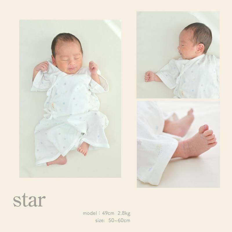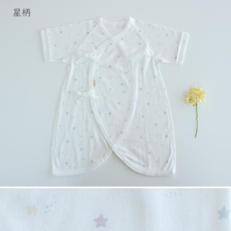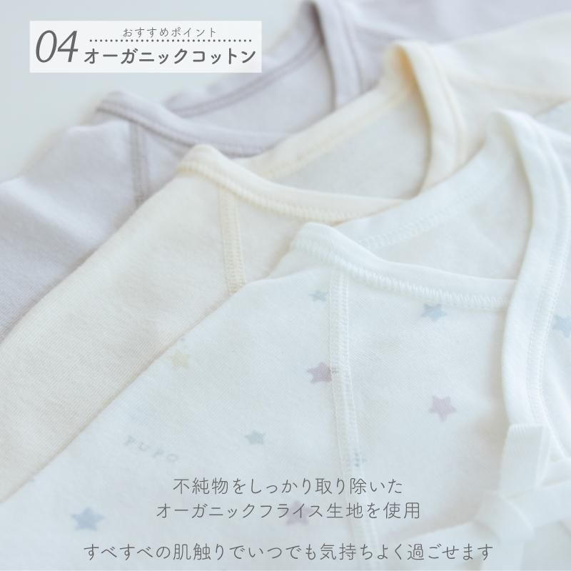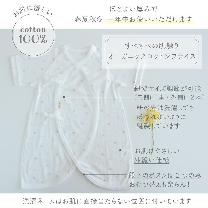 【11/20~27冬生まれ960円OFF】コンビ肌着 日本製 オーガニックフライス 星柄 綿100% 出産準備 アイボリー アースグレー 50-60cm 新生児【選べる肌着】【メール便OK(03)】