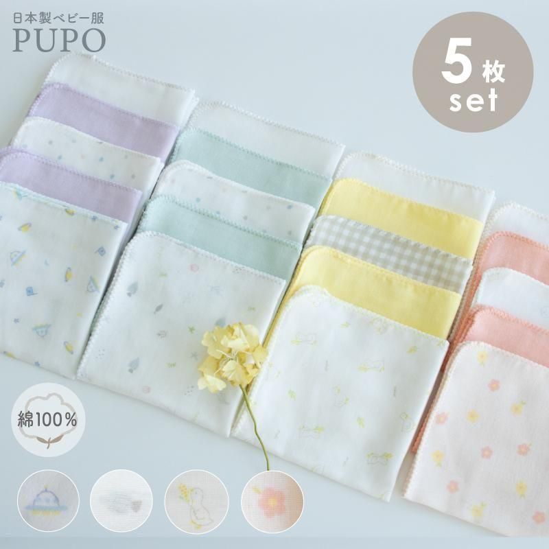沢山必要なハンカチをお得なセットにしました!使い始めからふんわりソフトな肌触り ガーゼハンカチ5枚セット【メール便OK(03)】