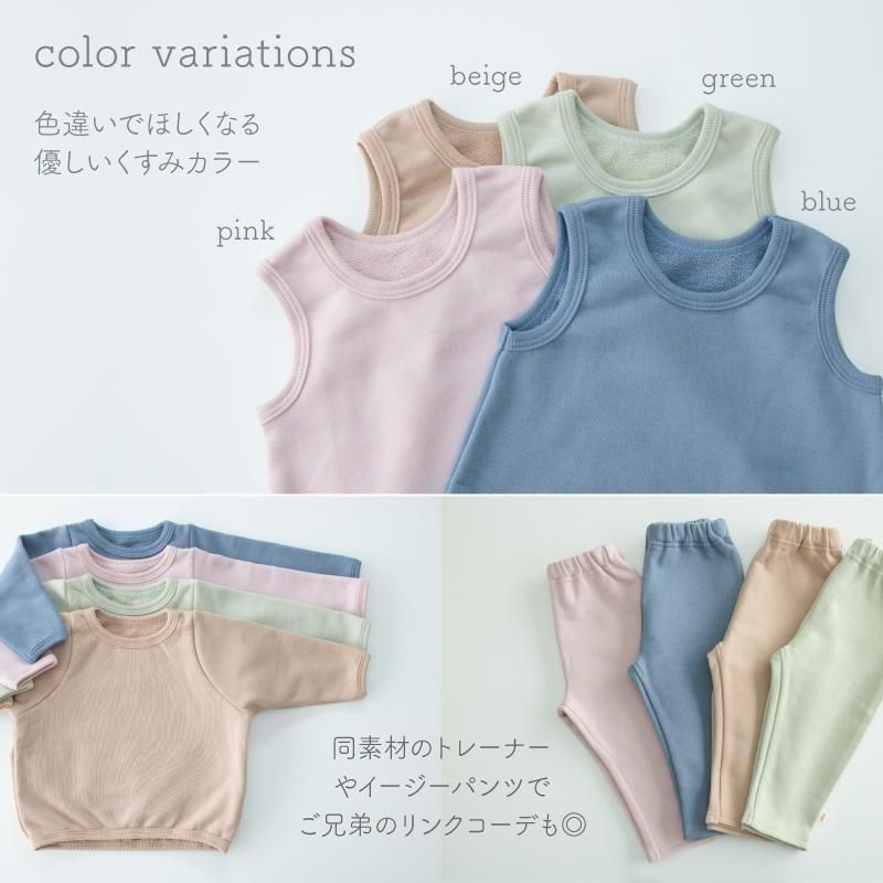 【メール便OK(10)】シンプルで着まわしやすい 裏毛サロペット ベージュ/グリーン/ピンク/ブルー 70/80cm 日本製