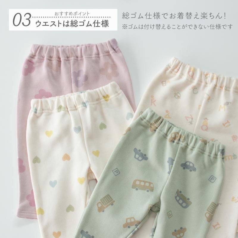| おすすめ ポイント | ・肌触りの良い裏毛素材を使用したイージーパンツです。 ・綿100%の裏毛素材です。起毛無しなので、汗っかきのお子様も安心してご着用いただけます。 ・優しい肌触りで、吸水性も良く、軽い着心地です。 ・ヒップ、太もも部分はゆったり、ひざ下はすっきりシルエットで着心地らくちんです。 |